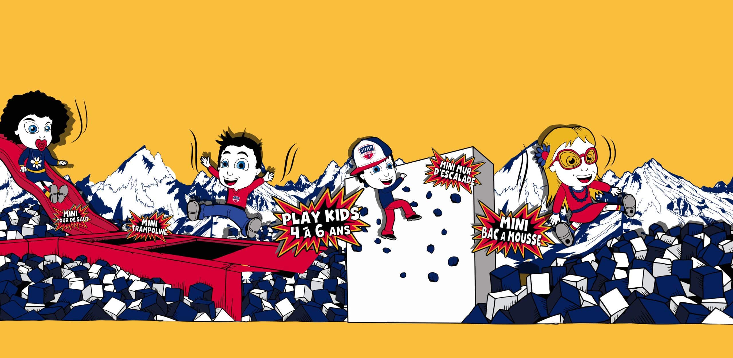 Un espace dédié aux jeunes de 4 à 6 ans, Trampolines, Bac à mousse, Tour de saut et Mur d’escalade, tout ce dont un enfant a besoin pour s’amuser !